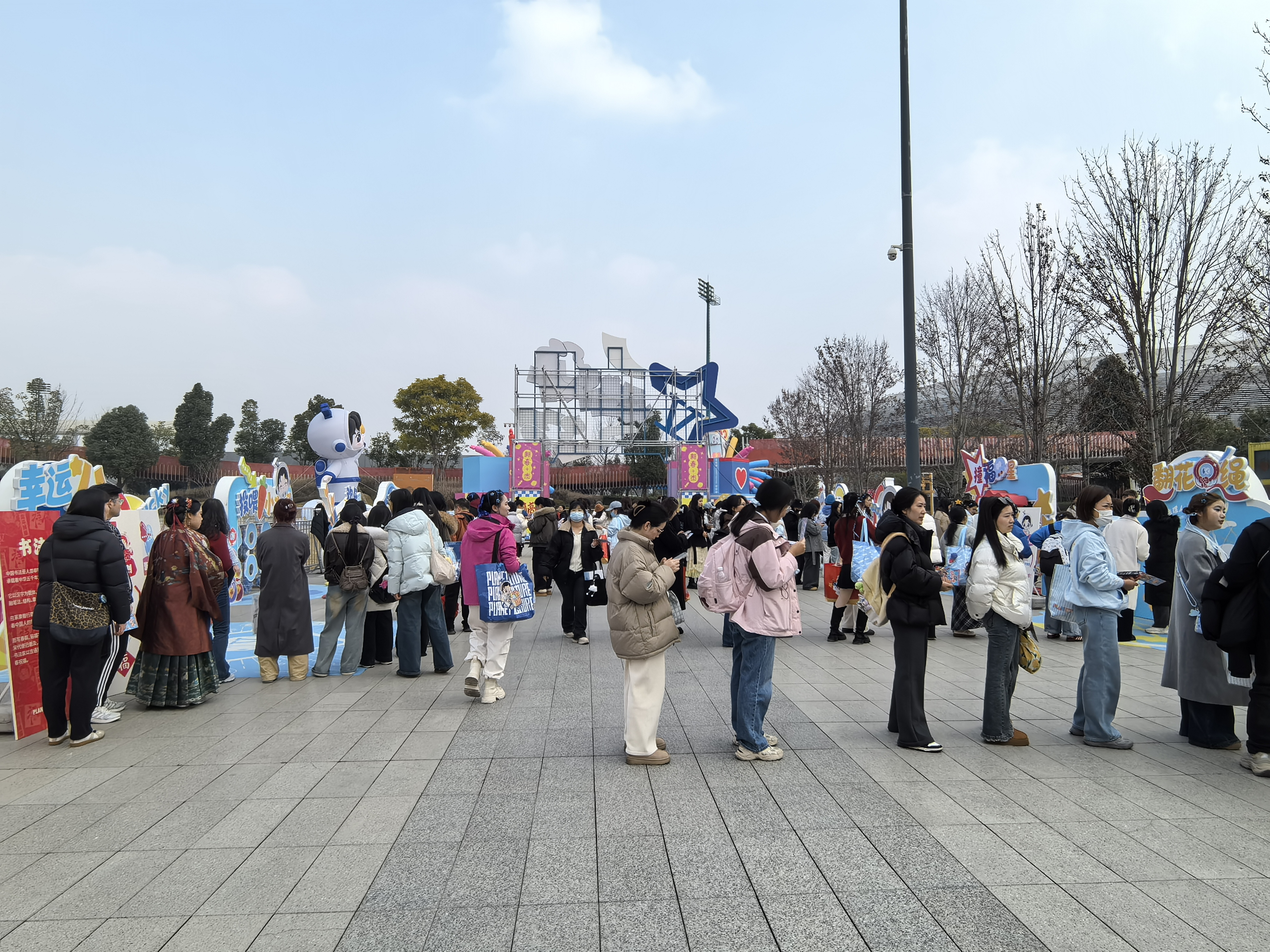 与演唱会配套的“新春+杰游园会”同样火爆。记者了解到,为让观众有更好体验,游园会每日限流700人,需要提前预约且场场爆满。游园会巧妙融合成都非遗元素与麻将文化,设置了非遗剪纸、手写福字体验区及“捞八花”“摸八筒”等特色游戏,集游戏区、售卖区、打卡区于一体,让参与者在游戏中感受成都过年的喜庆氛围。
